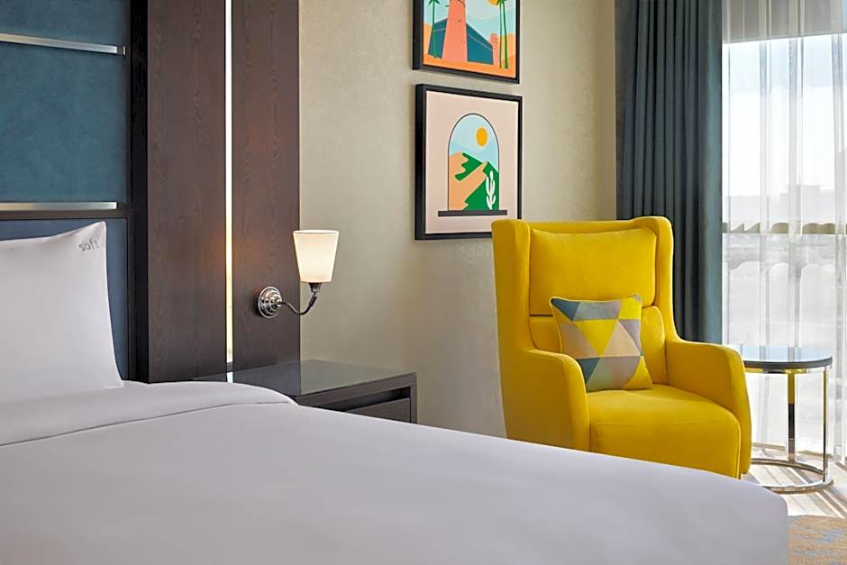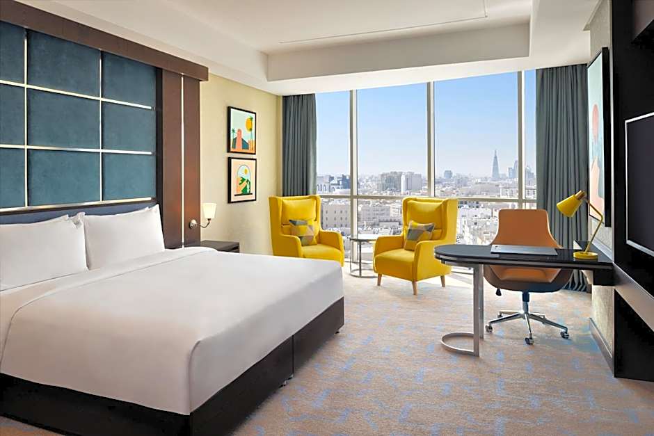 With Riyadh’s city center just away, downtown sights are easy to reach, and a landmark view adds to the experience. Wellness options include a spa tub, sauna (free), and a hot tub, while live music contributes a lively local atmosphere.